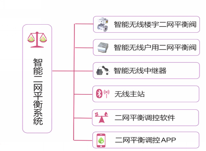 配置于三次网各支路,时时污染监测水流量、平均温度、重压等参数值,半自动修改阀体压力,进行来说水力平衡点。